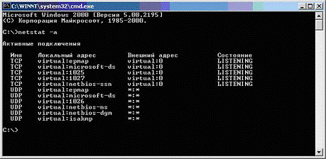 После выполнения в командной оболочке команды netstat -a в том же окне