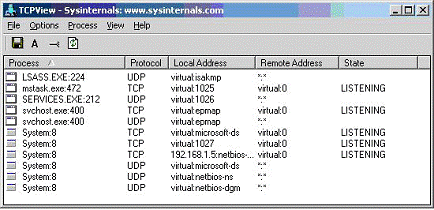 например, утилитой tcpview.exe3). Эта утилита отображает более