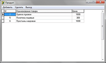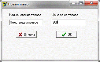 При выборе пункта меню «Данные/Товар» открывается окно, которое содержит