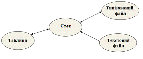 виключення елементів робляться на одному боці. Принцип організації стеку: