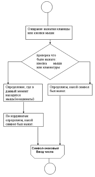 Ввод чисел и знака ®обработка ввода®требуемая операция над