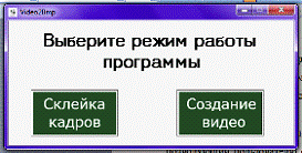При запуске программы открывается форма с двумя кнопками «Склейка кадров»