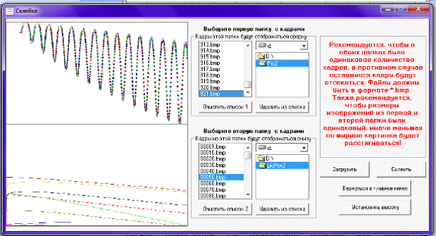 Верхние DriveListBox, Directory ListBox используются для выбора папки с кадрами, которые