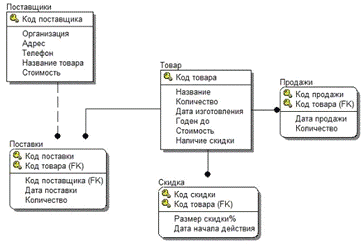 примеру, между сущностями «Поставщики» и «Поставки» связь - один ко многим, это