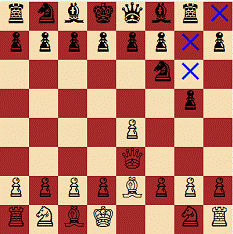 2) чёрные: Л a8, h8, К b8, g8, С c8, f8, Кр d8, Ф e8, пп a7, b7,