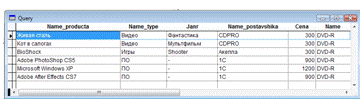 Рисунок 79 - Результат выполнения запроса. Выбрать продукцию на DVD носителях