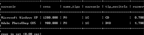 SELECT CDSHOP.produkt.nazvanie, CDSHOP.produkt.cena, CDSHOP.tip_produkcii.name_tipa, CDSHOP.postavshiki.nazvanie, CDSHOP.nositely. tip_nositela, CDSHOP.nositely.razmer