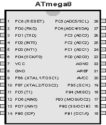 Рисунок 2 - Цоколевка микроконтроллера Atmega8А-PU