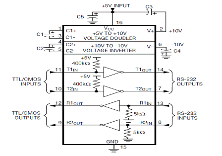 На рисунке 4 представлена принципиальная схема микросхемы MAX232.