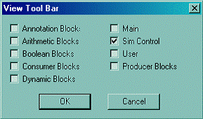 Выполнить команду главного меню Tools Customize Tool Bars и в появившемся диалоговом окне View Tool Bar установить отметку на Sim Control и убрать все осталь- ные отметки (см.