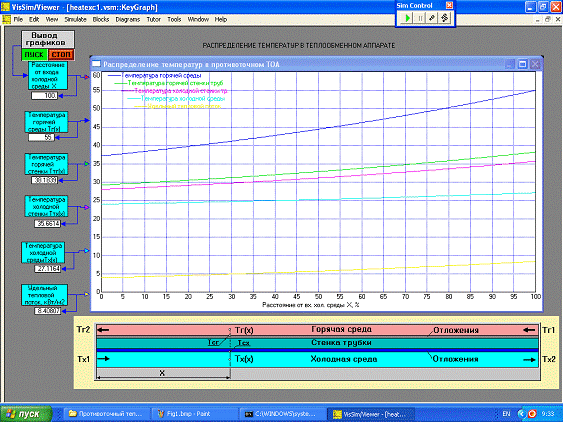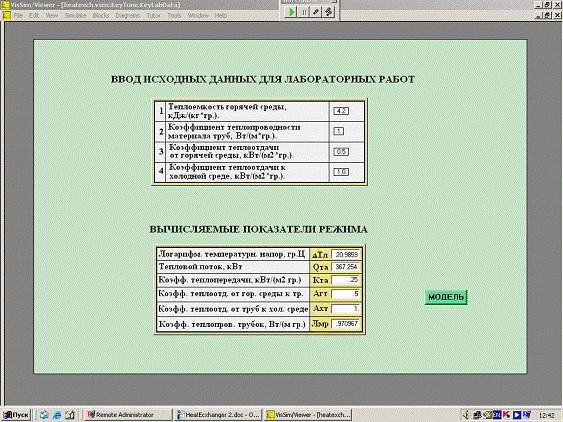 компьютера, моделирующую рабочие процессы в противоточном теплообменном аппарате