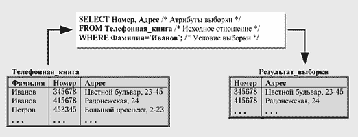 проекции. В нашем случае из отношения Телефонный_справочник осуществляется