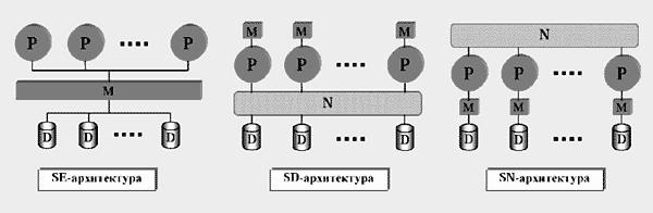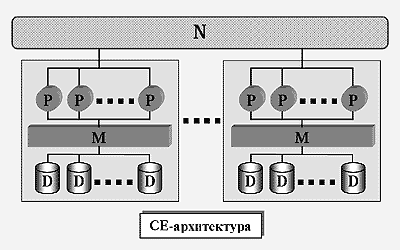 принципу, когда кластеры процессоров с разделяемой памятью и дисками