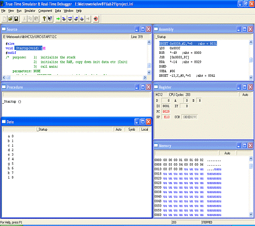 процедуры main(). Только в этом случае в ОЗУ М68НС12 под объявленные переменные