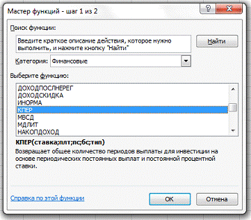 После выбора функции КПЕР откроется окно, в графы которого нужно