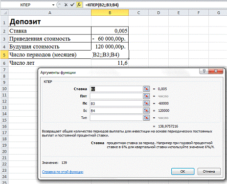 получим число периодов, равное 138,97. То есть почти 139 месяцев.