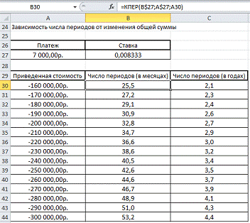 зависимости. В таблице зависимости числа периодов от изменения процентной