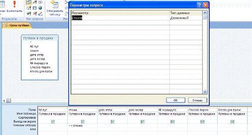 стоимость, а в условии отбора <=[стоим]. Назовём запрос «Цена путёвки» (рис.