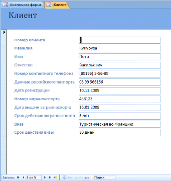 Клиент, открывается форма «Клиент», сделанная на основе таблицы «Клиент» (рис.