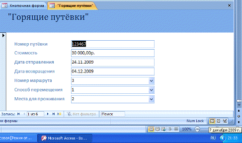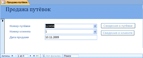 «Продажа путёвок», сделанная на основе соответствующей таблицы (рис. 6.6). На