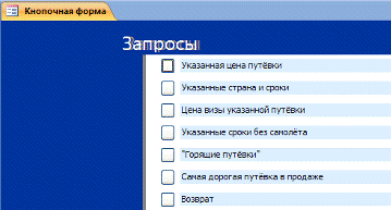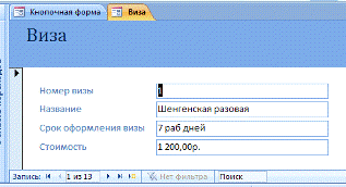 соответствующей кнопки на кнопочной форме Формы (рис. 6.7).
