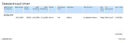фирмы, нажимаем на кнопочной форме «Отчёты» кнопку Ежемесячный отчёт и получаем