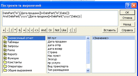 отчёт, в условии отбора даты продажи использовался Построитель выражений (рис.