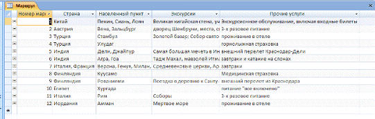 выбираем все поля, кроме «№ маршрута». Из таблицы «Маршрут» выбираем поле