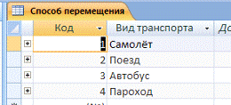 очень часто повторяться. Поэтому создадим две таблицы «Способ перемещения» и