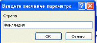 «Страна». Открываем окно «Параметры запроса» и выбираем имя и тип данных. В