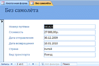 «Клиент», чтобы узнать сведения о данном клиенте и формой «Путёвка», чтоб