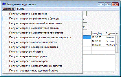 вpемени прибытия на станции, по количеству совеpшенных маршрутов.