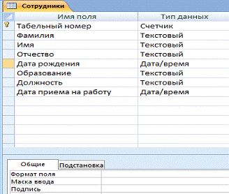 · Задать ключевое поле. Для того, чтобы Microsoft Access мог