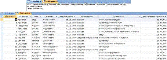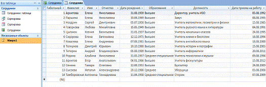 Рисунок 8 - Таблица «Сотрудники», открытая с помощью макроса
