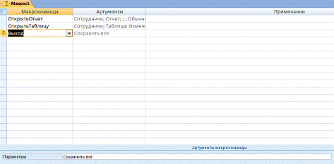 · В ячейке столбца Макрокоманда нажать кнопку раскрытия списка,