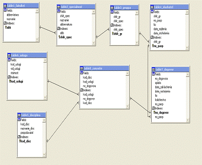 модели, реализована база данных оказания платных образовательных услуг в СУБД Visual