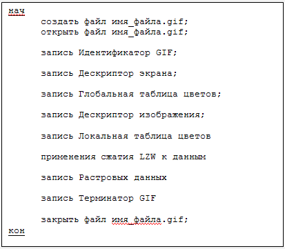 изображения. Потом записываются данные. Сжатые данные хранятся в виде потока