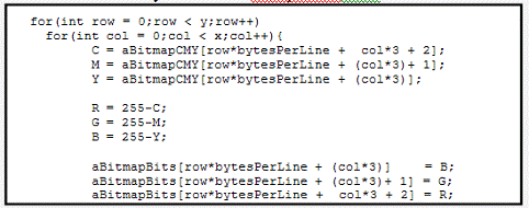 y;row++)(int col = 0;col < x;col++){= aBitmapCMY[row*bytesPerLine +