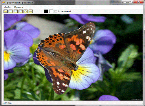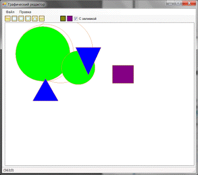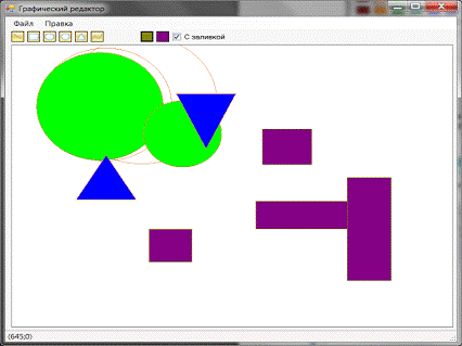 рисования различных фигур (с заливкой и без заливки). Также реализованы функция