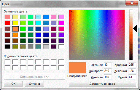 позволяющие выбрать цвет, открывается диалоговое окно выбора цвета.