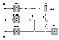 шине питания (VCC), PORTx - бит привязки вывода к VCC и бит выходных данных,