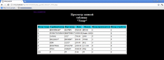* from TOVAR"; $result=ibase_query($query); echo '<table