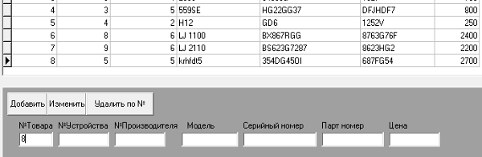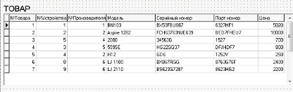 NO_TOV SMALLINT, SERIALNO VARCHAR (40), PARTNO VARCHAR (40), CENA DECIMAL