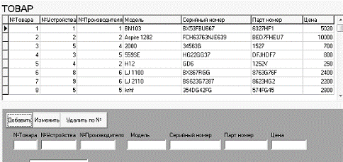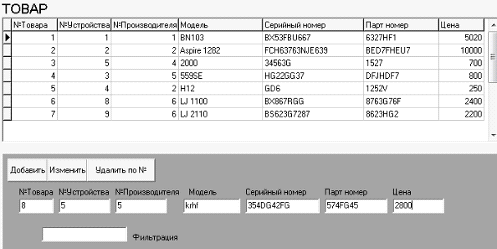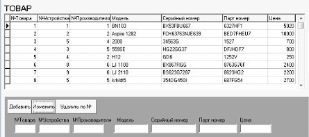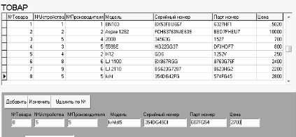 serialno, tovar. partno, tovar. cena) values ( : NO_TOV, : NO_USTR, :