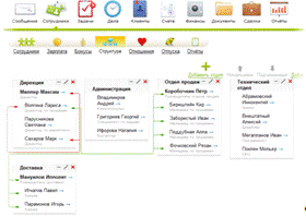 бизнес процессами, сотрудниками, финансами, складом, заказами, отделами,
