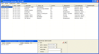 Деятельность данного предприятия фиксируется принятием заказов и распределением