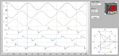 данные в виде трех диаграмм. Это гистограмма гармоник сети (рисунок 17),
