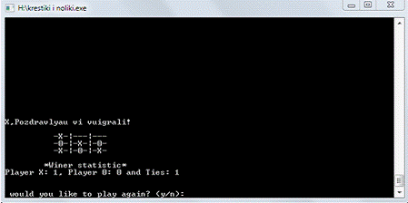 крестиков и отобразилось меню статистики в котором игроку играющему иксом