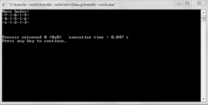 выигравшегоturn = 1;(!has_wonQ('X') && !has_wonQ('0')){();move = get_move();//