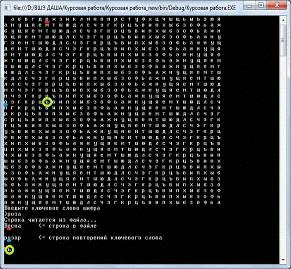 //ПРОЦЕСС ШИФРОВАНИЯx = 0, y = 0; //координаты новой буквы в